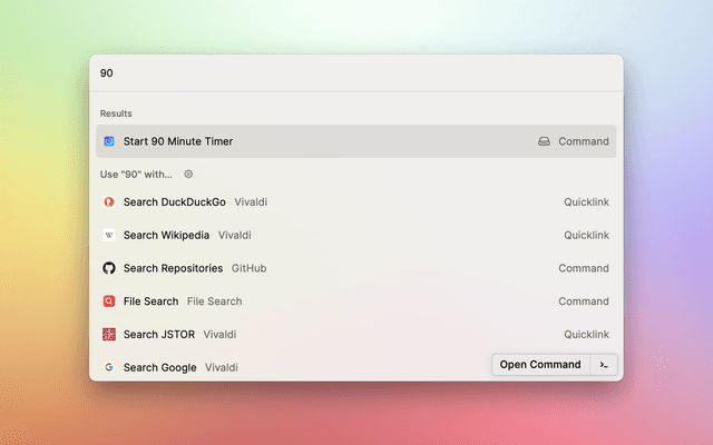 This is a lightweight extension allowing you to start and stop countdown timers, stopwatches, and alarms. It works directly in Raycast, no external apps or dependencies required.