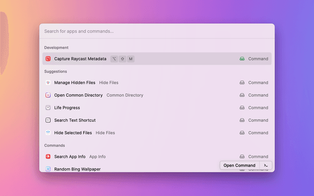 • Capture Raycast Metadata: Capture a screenshot for Raycast Extension's metadata.
