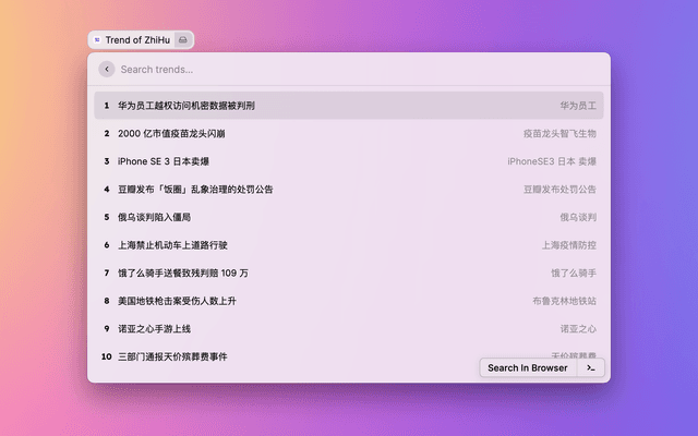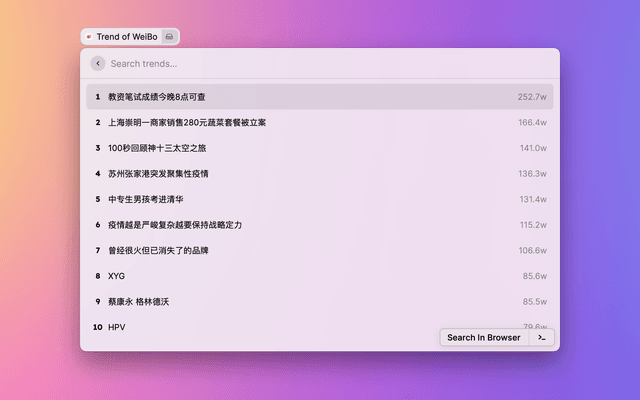 Show trends on WeiBo, ZhiHu, and DouYin.
